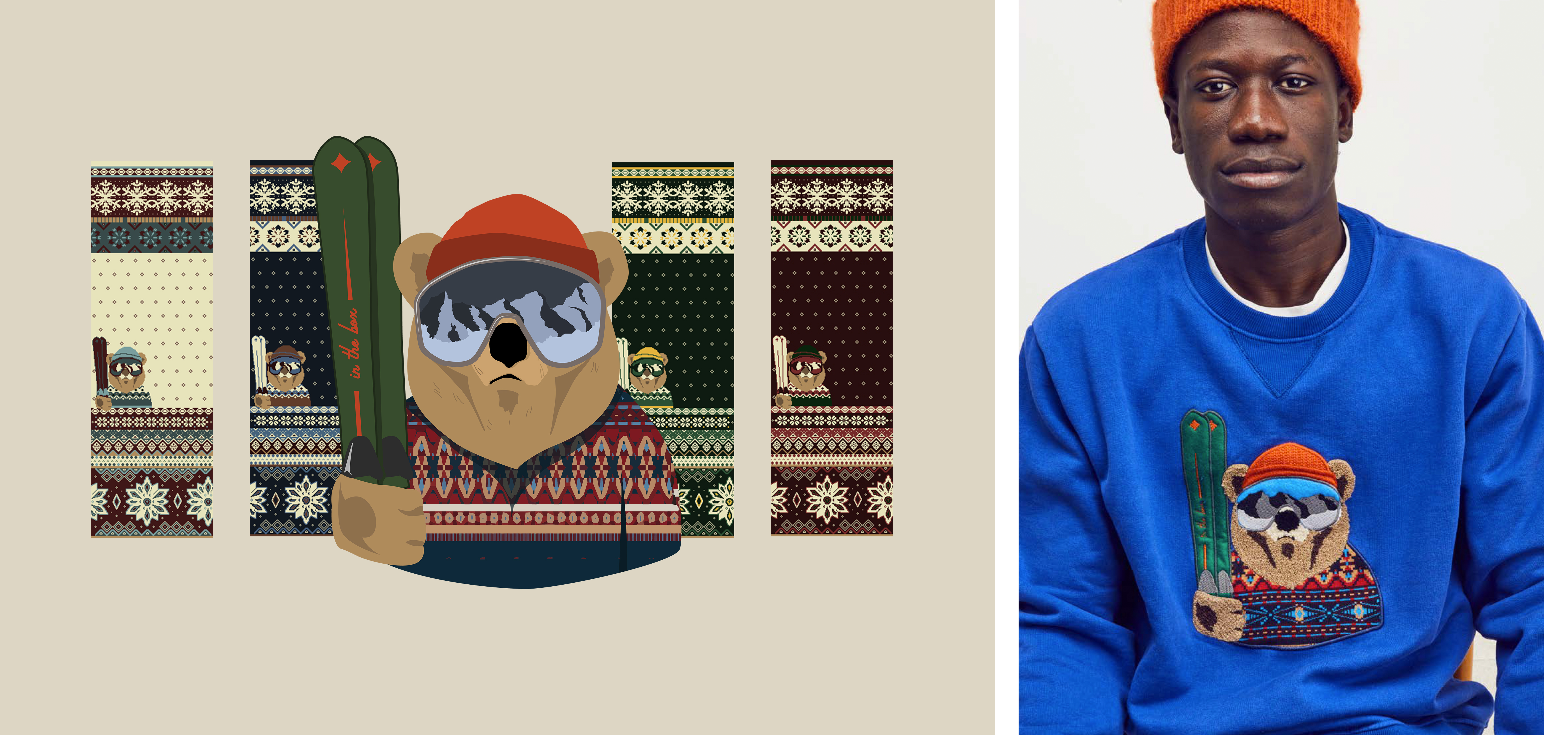 In The Box est une marque milanaise de vêtements. Originellement spécialisée dans la chaussette, elle présente ses produits dans des boîtes cubiques (d’où l’origine du nom) avant de d’étendre sa gamme au prêt-à-porter en général. Le Lead designer ayant été absent pour les collections de vêtements des saisons Hiver 2019 et 2020, j’ai été amené à le remplacer et prendre en charge la direction artistique pour la marque.